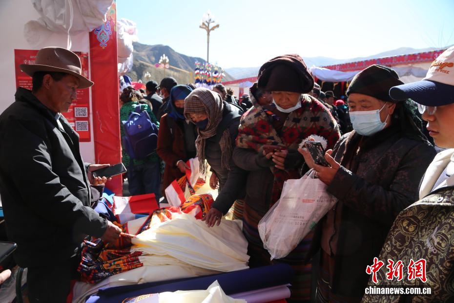 2月2日,西藏自治區(qū)山南市瓊結(jié)縣2026年“幸福瓊結(jié)·優(yōu)享年貨”促消費暨展銷活動在朗熱大道啟幕,為春節(jié)、藏歷新年預(yù)熱添彩。本次活動由瓊結(jié)縣投入200萬元人民幣打造,為期7天,吸引103家商戶入駐,其中73家為本地商戶,帶來150余種特色商品,高原農(nóng)產(chǎn)、藏式手工藝品、傳統(tǒng)年貨齊聚現(xiàn)場,盡顯藏地年味?;顒油瞥鲛r(nóng)業(yè)銀行掌銀立減優(yōu)惠,民眾無需領(lǐng)券即可享實惠,現(xiàn)場還設(shè)置咨詢臺與宣傳點,切實保障消費安全。圖為民眾在選購香布(藏式建筑門窗上裝飾的五彩布料)。倫珠澤仁 攝