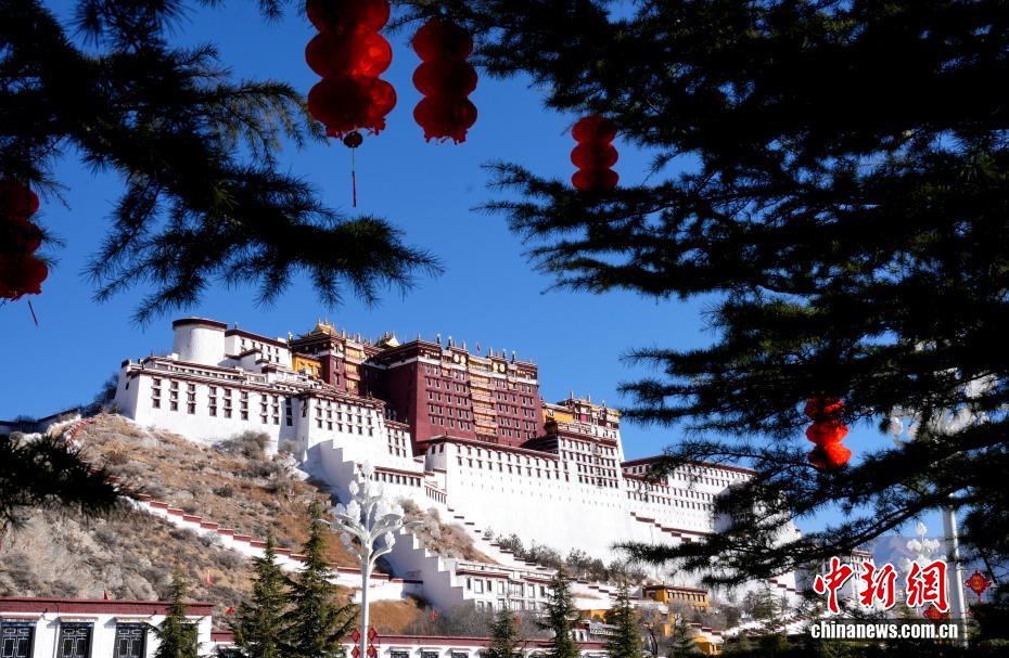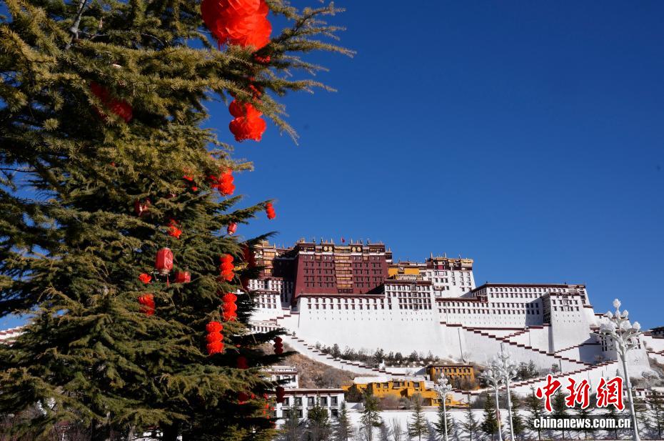 2月3日,西藏拉薩布達拉宮廣場,紅燈籠裝點節(jié)日氛圍。隨著春節(jié)、藏歷新年的臨近,拉薩城區(qū)大街小巷被精心裝點,年味愈發(fā)濃郁。中新社記者 李林 攝