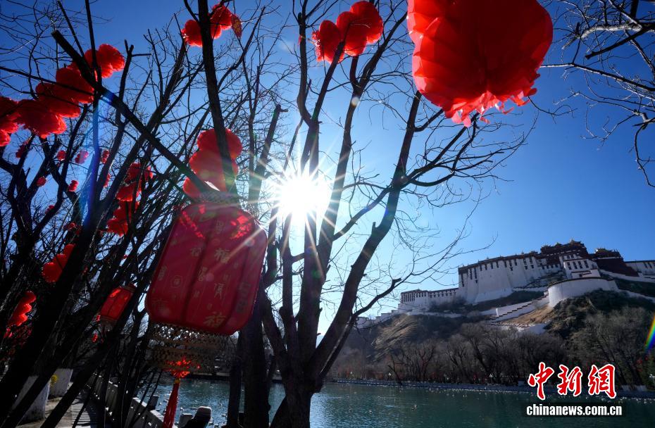 2月3日,西藏拉薩布達拉宮腳下的宗角祿康公園,紅燈籠裝點節(jié)日氛圍。隨著春節(jié)、藏歷新年的臨近,拉薩城區(qū)大街小巷被精心裝點,年味愈發(fā)濃郁。中新社記者 李林 攝