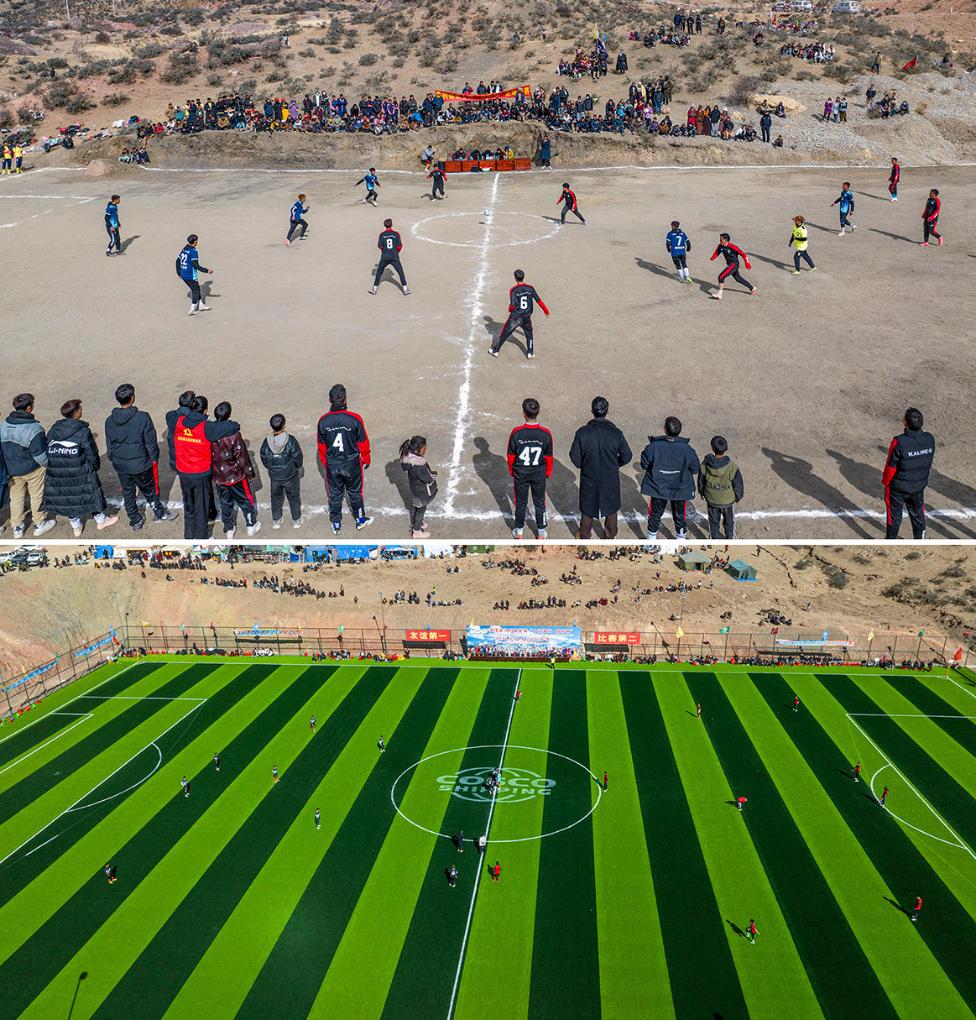 “以前一場比賽下來,球鞋球襪里全是土,但是大家最期待的還是新年前的足球賽?!?021年嘎瑪加永燈培大學(xué)畢業(yè)后回到家鄉(xiāng)工作,在一座標準化足球場踢球是他那時最大的心愿。