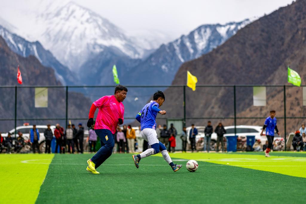 夢想終有回響。2024年,洛隆縣與對口支援企業(yè)中國遠洋海運集團一道在土球場附近,投資200余萬元建成一座占地8000余平方米的11人制標準足球場,當(dāng)年12月順利竣工,被當(dāng)?shù)厝擞H切喚作“云上球場”。