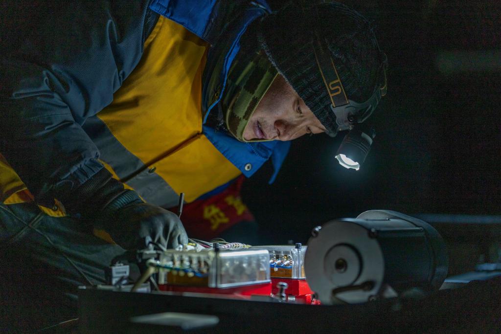 “先確認斷路器狀態(tài)。”王富生半蹲在送電端箱盒前,凍得發(fā)紫的手緩緩打開電纜盒。成格樂的頭燈照亮箱盒內密密麻麻的端子排,他用內六角扳手將早已斷裂的小枕木和銹蝕的過軌卡扣逐一取下。王富生隨即將新的箱盒引接線安裝固定好。
