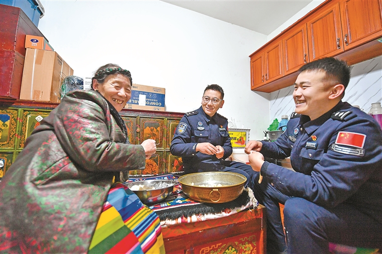下司馬鎮(zhèn)邊境派出所所長(zhǎng)益西平措望著滿屋歡聲笑語(yǔ)的場(chǎng)景,感慨道:“雖然每年過(guò)年都回不了家,但轄區(qū)群眾把我們當(dāng)自家人,不愁吃不上熱乎的年夜飯。”