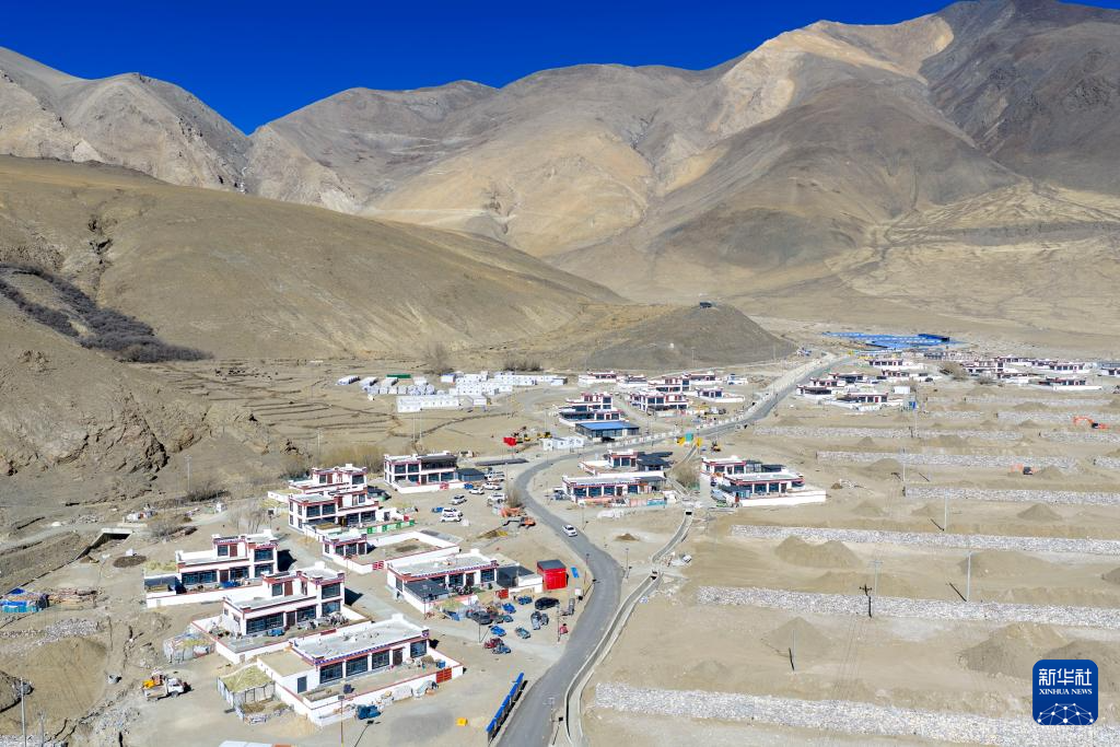 2月16日拍攝的西藏定日縣長所鄉(xiāng)古榮村災(zāi)后重建的新居(無人機(jī)照片)。新華社記者 旦增尼瑪曲珠 攝