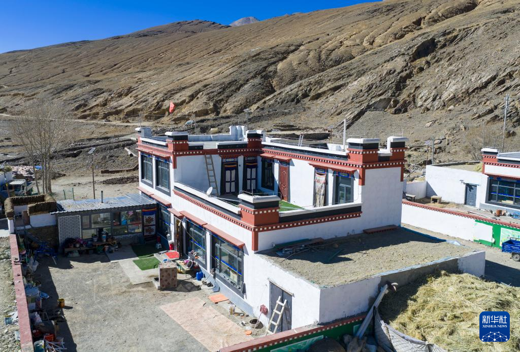 2月16日拍攝的長所鄉(xiāng)古榮村村民桑杰家的新居(無人機(jī)照片)。新華社記者 旦增尼瑪曲珠 攝