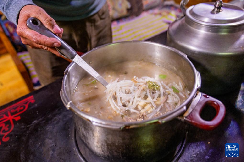 在藏語中,“古”意為“九”,“突”意為“面”,“古突”是一種用牦牛肉湯加入牛肉、蘿卜、奶渣等食材熬煮的面食。按西藏傳統(tǒng)習(xí)俗,“古突”夜,家家戶戶迎來團(tuán)聚,一起享用“古突”。