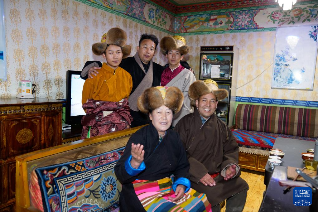 2月16日,在拉薩堆龍德慶區(qū)東嘎街道桑木社區(qū),群群的兒子羅桑土旦(后排中)與家人合影。新華社記者 丁增尼達(dá) 攝