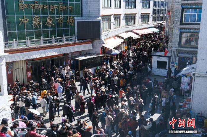 圖為2026年2月13日,藏歷新年前夕,拉薩傳統(tǒng)年貨市場沖賽康市場周邊人流如織。江飛波 攝