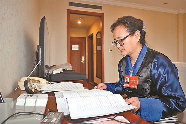 圖為全國(guó)人大代表尼珍。記者 李洲 攝