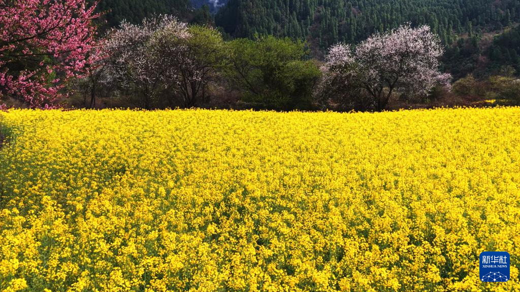 易貢油菜花田位于西藏林芝市波密縣易貢鄉(xiāng)。近期,連片油菜花競(jìng)相開(kāi)放,桃花也綴滿枝頭,與遠(yuǎn)山相互映襯,構(gòu)成一幅高原田園畫(huà)卷。