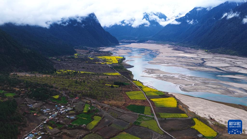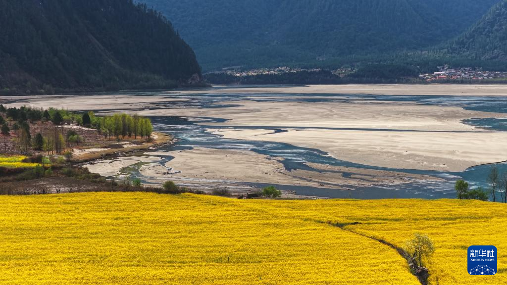 3月20日拍攝的西藏林芝市波密縣易貢鄉(xiāng)的油菜花田(無(wú)人機(jī)照片)。新華社記者 普布次仁 攝