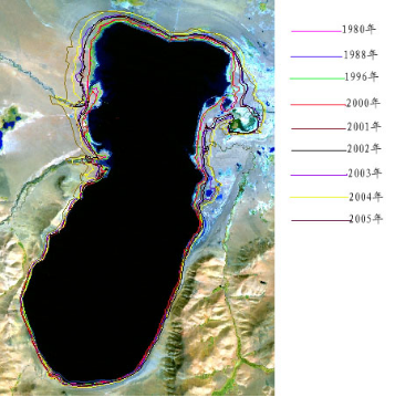 這是巴木錯(cuò)湖泊1980年至2005年水面面積遙感動(dòng)態(tài)變化監(jiān)測圖。(受訪單位供圖)