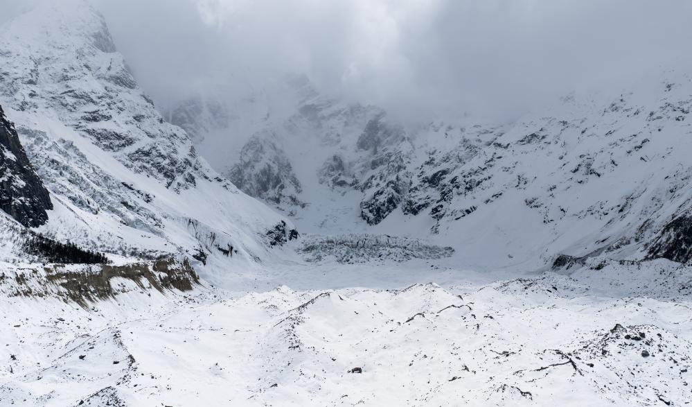 相較之下,白普隆溝的春天要來得晚一些,這里是“谷中之谷”,谷外山花盛開時,這里的風雪似乎還在奏著冬的尾調。