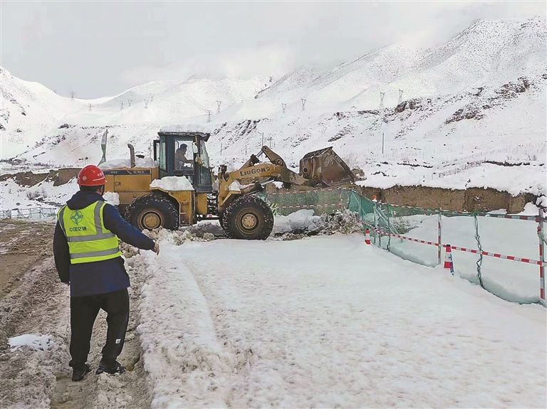 中交養(yǎng)護工程公司項目組啟動應(yīng)急響應(yīng),組織人員冒雪養(yǎng)護道路。記者 王莉 攝