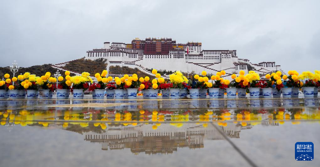 3月28日,群眾代表在布達(dá)拉宮廣場合影留念。新華社記者 晉美多吉 攝