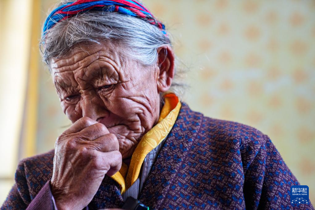 次仁桑姆和家人在宗卡村家中回憶曾經(jīng)的生活,黯然淚下(3月26日攝)。新華社記者 丁增尼達(dá) 攝