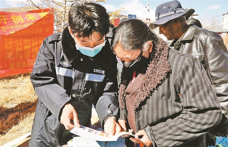 在桑日縣,自治區(qū)級(jí)優(yōu)秀宣講員次仁歐珠用方言“土話”講“大事”。他從自己的所見所聞講起,用一個(gè)個(gè)鮮活的故事、一組組對(duì)比鮮明的數(shù)據(jù),將舊西藏的黑暗與新西藏的光明直觀地呈現(xiàn)在大家面前?!翱粗倍沸亲卟幻月罚伯a(chǎn)黨走會(huì)幸福?!边@句樸素的話語,在群眾心中激起陣陣漣漪。