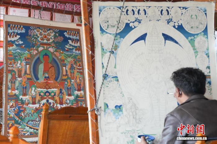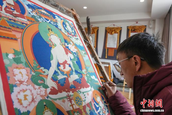 西藏日喀則傳承唐卡技藝 傳統(tǒng)手工業(yè)帶動(dòng)民眾增收