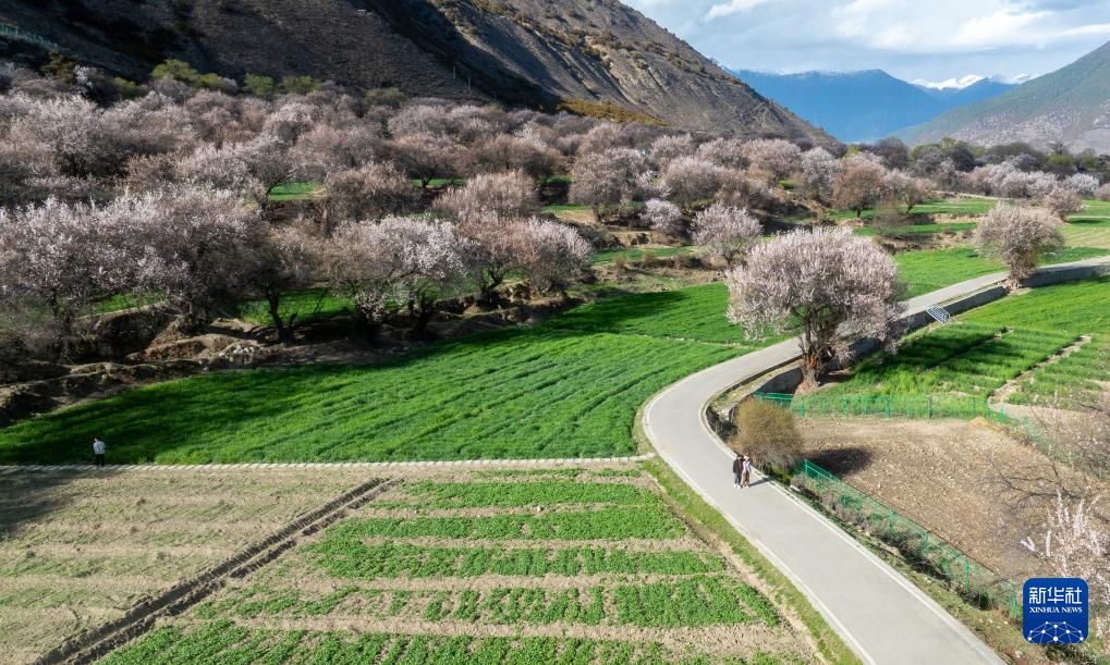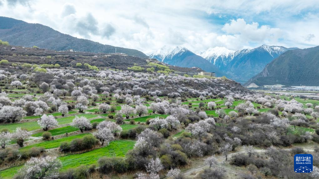 這是4月2日在林芝巴宜區(qū)朵當(dāng)村拍攝的桃林(無人機照片)。新華社記者 丁增尼達 攝