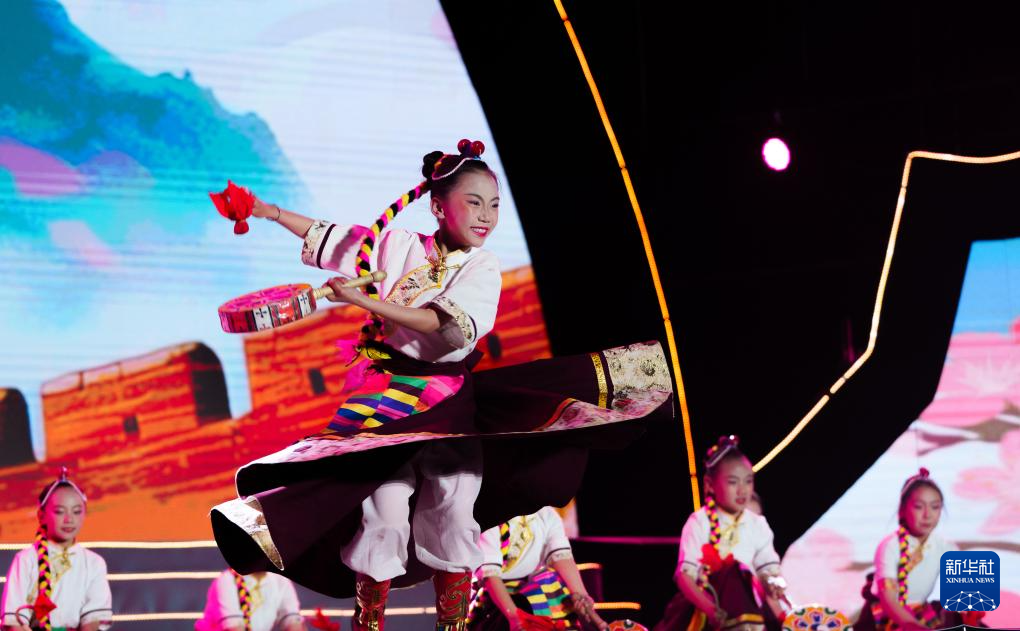 這是4月3日拍攝的林芝第二十三屆桃花旅游文化節(jié)開幕式文藝演出現(xiàn)場。新華社記者 丁增尼達 攝