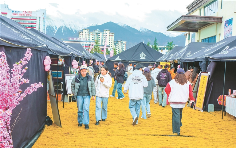 頗具人氣的“尋夢桃花嘉年華”煙火市集。記者 劉楓 攝