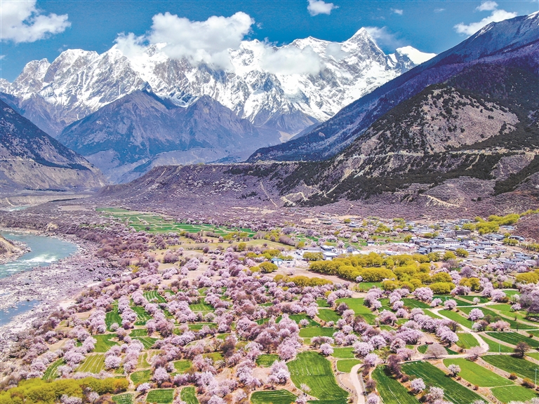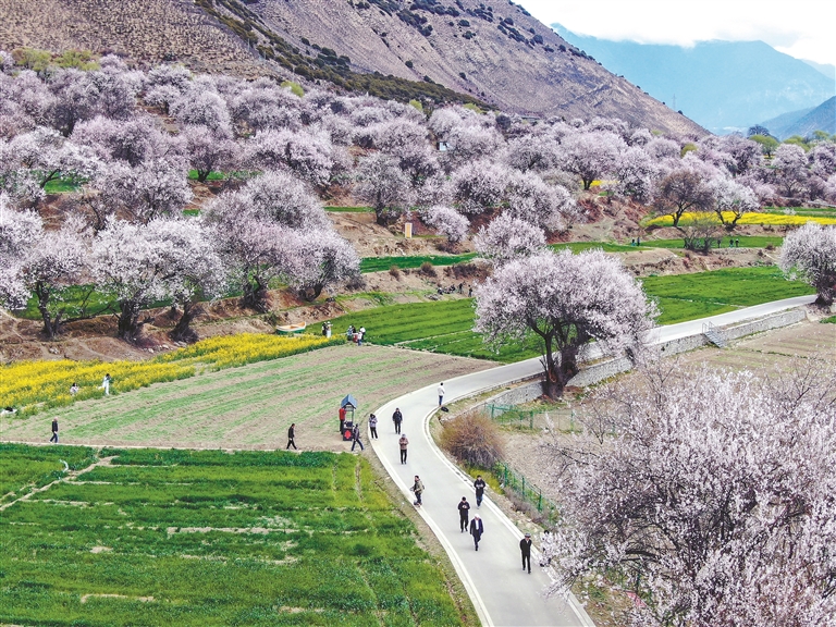 漫山桃花常開,生態(tài)之美、百姓之富、產(chǎn)業(yè)之興,在春風(fēng)里、在繁花中,徐徐鋪展成雪域江南獨有的錦繡長卷。