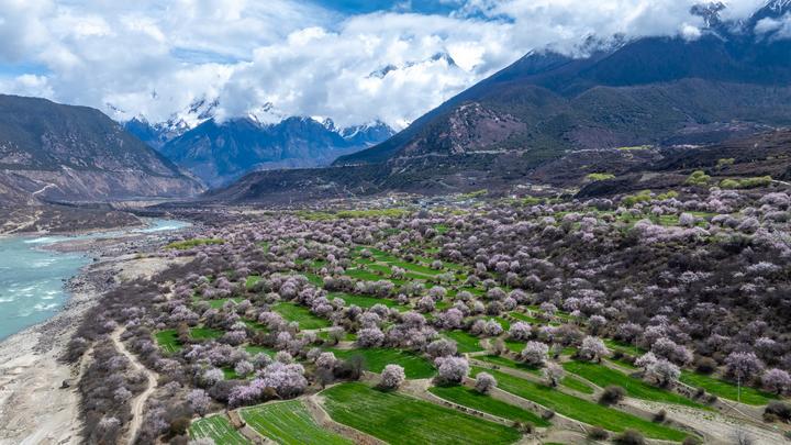 百里桃林沐雪盛放,粉霞漫卷河谷山川,遠瞰猶如精心雕琢卻又恣意鋪展的粉彩畫卷。在喜馬拉雅山脈的褶皺里,這股“溫柔”而向上的“野性”,昭示著西藏最早的春天已經(jīng)到來。