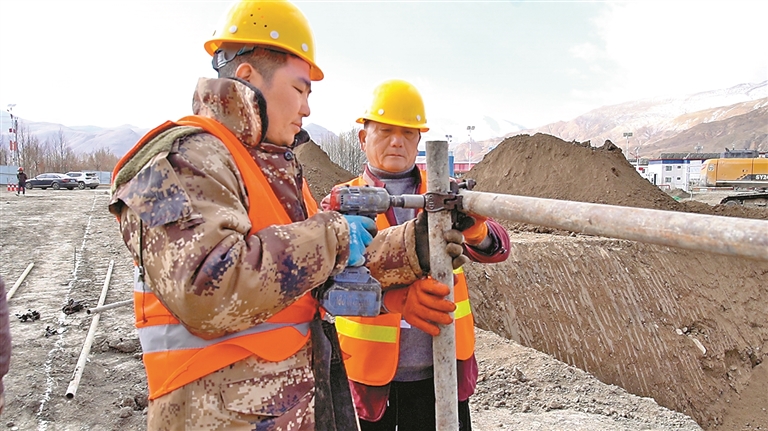 春日的高原仍透著涼意,位于山南市措美縣縣城東北角的農(nóng)畜產(chǎn)品交易市場建設項目工地,機械的轟鳴聲已經(jīng)響了多日。挖掘機一鏟一鏟施工,運輸車輛來回穿梭,工人們蹲在地上綁鋼筋、支模板。這個總投資2300萬元的項目建成后,將為本地農(nóng)畜產(chǎn)品交易提供一個固定的場所,農(nóng)牧民群眾再也不用窩在路邊帳篷里做生意了。