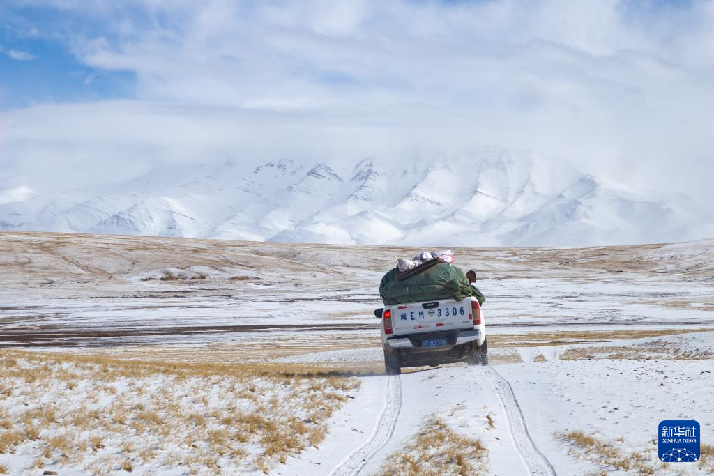 4月9日,羌塘國家級自然保護(hù)區(qū)那曲地區(qū)管理局專業(yè)管護(hù)隊趕往“巴毛窮宗”。新華社記者 姜帆 攝