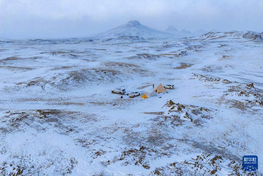 4月11日,羌塘國家級自然保護(hù)區(qū)那曲地區(qū)管理局專業(yè)管護(hù)隊在“巴毛窮宗”地區(qū)雪中宿營(無人機(jī)照片)。新華社記者 姜帆 攝