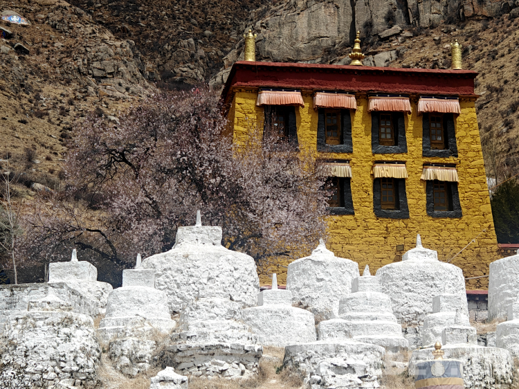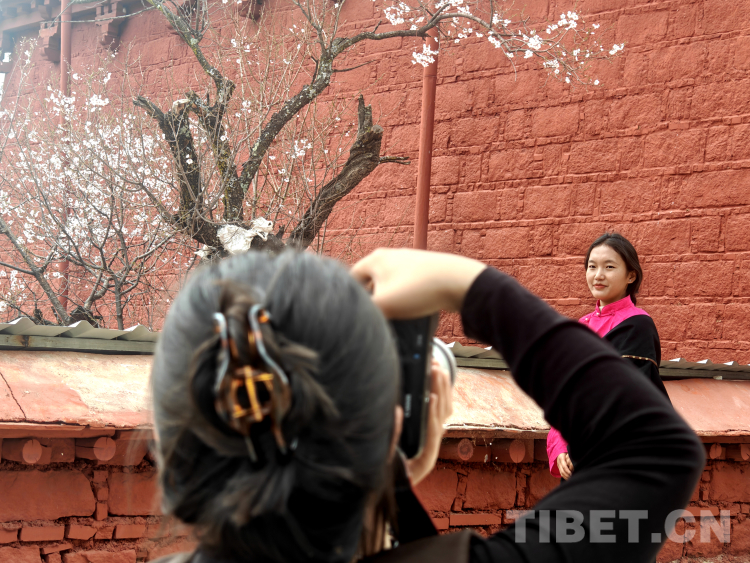 中國(guó)西藏網(wǎng)訊 每年4月,位于西藏拉薩主城區(qū)北郊山坡上的古剎帕邦喀(也稱(chēng)帕崩崗),環(huán)繞寺院周?chē)奶一ㄊ㈤_(kāi),引來(lái)了諸多當(dāng)?shù)厥忻窕蛴慰图娂娗巴p花、拍照。