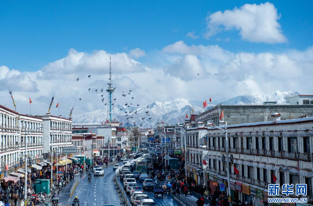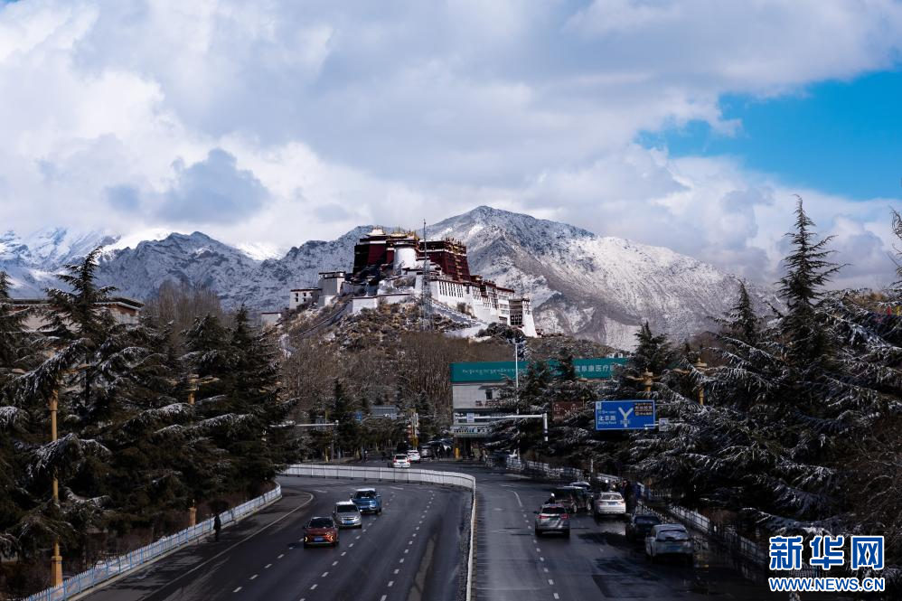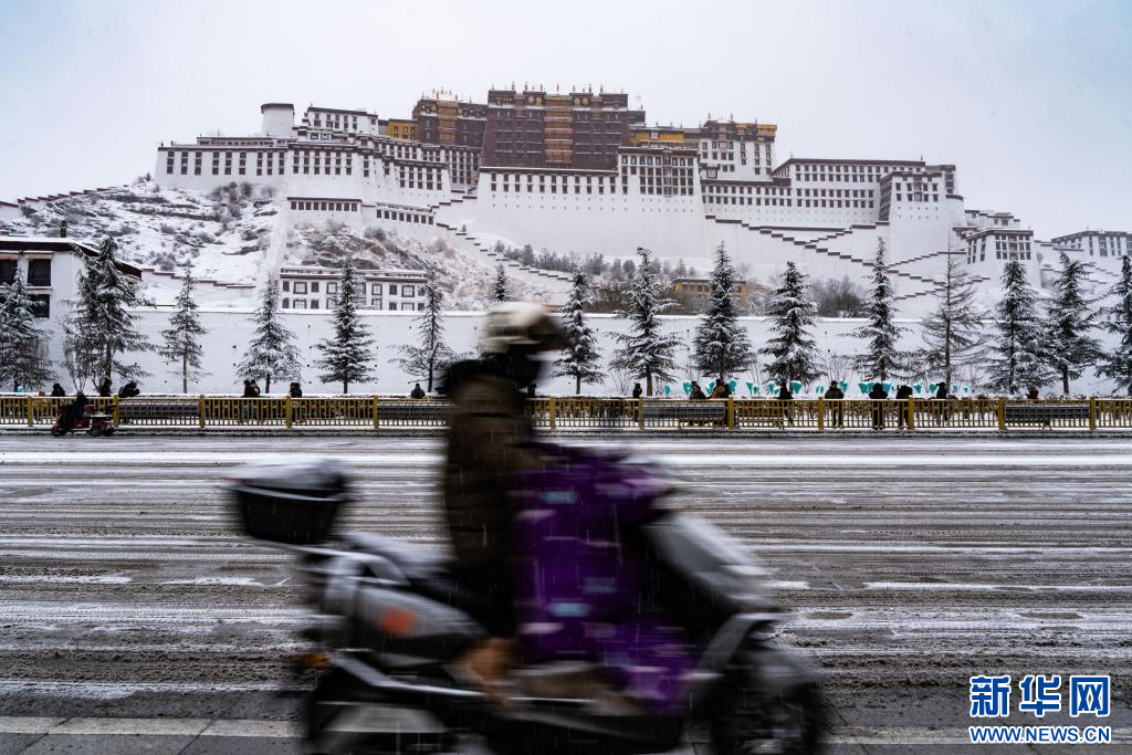 當日是農歷臘月初八,西藏拉薩市迎來降雪,城區(qū)銀裝素裹,雪景分外優(yōu)美,吸引了眾多市民外出拍攝游玩。