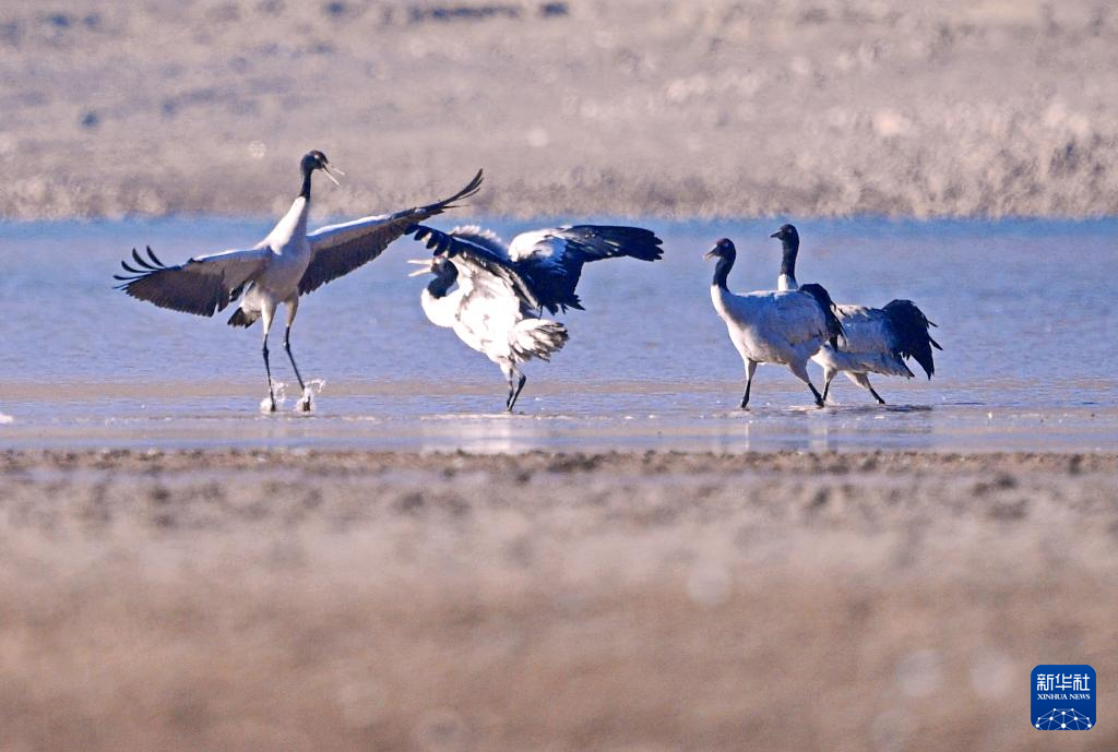隨著氣候轉(zhuǎn)暖,位于雅魯藏布江中游河谷黑頸鶴國家級自然保護區(qū)內(nèi)的西藏拉薩林周縣虎頭山水庫漸漸喧鬧起來,在此越冬的黑頸鶴開始春季遷徙,飛往色林錯黑頸鶴國家級自然保護區(qū)、羌塘國家級自然保護區(qū)以及甘肅、青海等地。