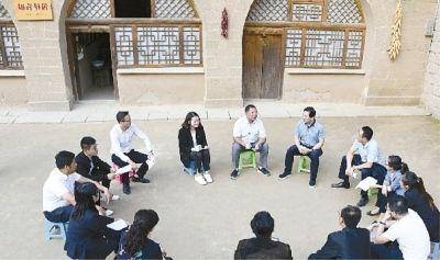 來(lái)自甘肅的紅色教育團(tuán)隊(duì)在陜西延川縣文安驛鎮(zhèn)梁家河村上黨課。新華社發(fā)
