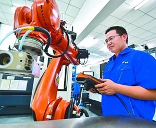 河北廊坊一家公司的工作人員在操作機器人。新華社發(fā)