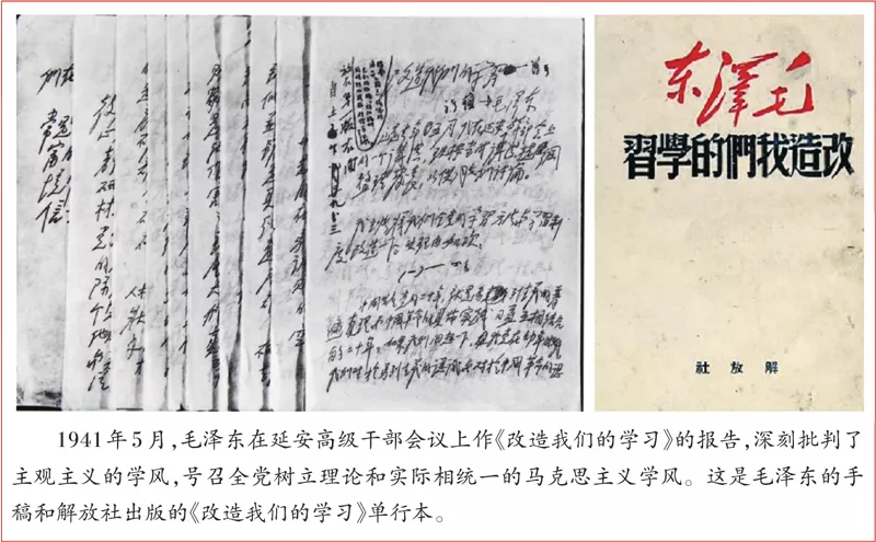 延安整風(fēng)運動以反對主觀主義、宗派主義、黨八股,樹立馬克思主義作風(fēng)為主要內(nèi)容。而鑒于深重的思想之弊和慘痛的實踐教訓(xùn),反對主觀主義以整頓學(xué)風(fēng),成為開展整風(fēng)運動的關(guān)鍵。整風(fēng)運動開展后,毛澤東就緊緊抓住思想方法和作風(fēng)問題不放。他在給中央研究組同志的信中指出:學(xué)習(xí)理論要“以研究思想方法論為主”。破除錯誤的思想方法,暢行正確的思想作風(fēng),最重要的就是要遵循實事求是的思想路線,做到理論聯(lián)系實際?!皩嵤虑笫恰边@個詞,并非毛澤東首創(chuàng),但把“實事求是”上升到黨的思想路線的高度,則是毛澤東的功勞。毛澤東強調(diào),“要分清創(chuàng)造性的馬克思主義和教條式的馬克思主義”,“宣傳創(chuàng)造性的馬克思主義”,“使中國革命豐富的實際馬克思主義化”。不能從理論上來思考中國革命實踐的人,是不能妄稱為馬克思主義理論家的。只有從客觀實際中概括出而又在客觀實際中得到證明的理論,才稱得起我們所講的理論。