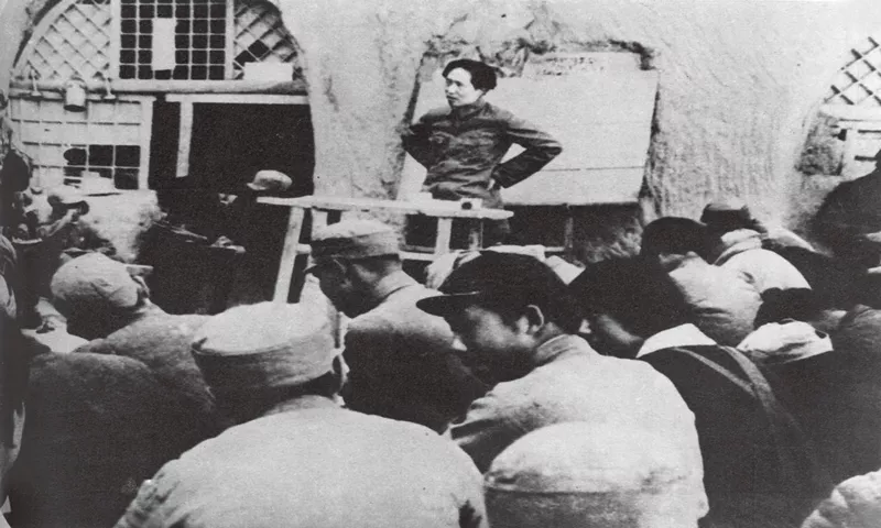 延安整風(fēng)期間我們黨強調(diào),反對主觀主義以整頓學(xué)風(fēng),反對宗派主義以整頓黨風(fēng),反對黨八股以整頓文風(fēng)。圖為整風(fēng)運動時,我軍某部連隊指導(dǎo)員在給戰(zhàn)士們講課。
