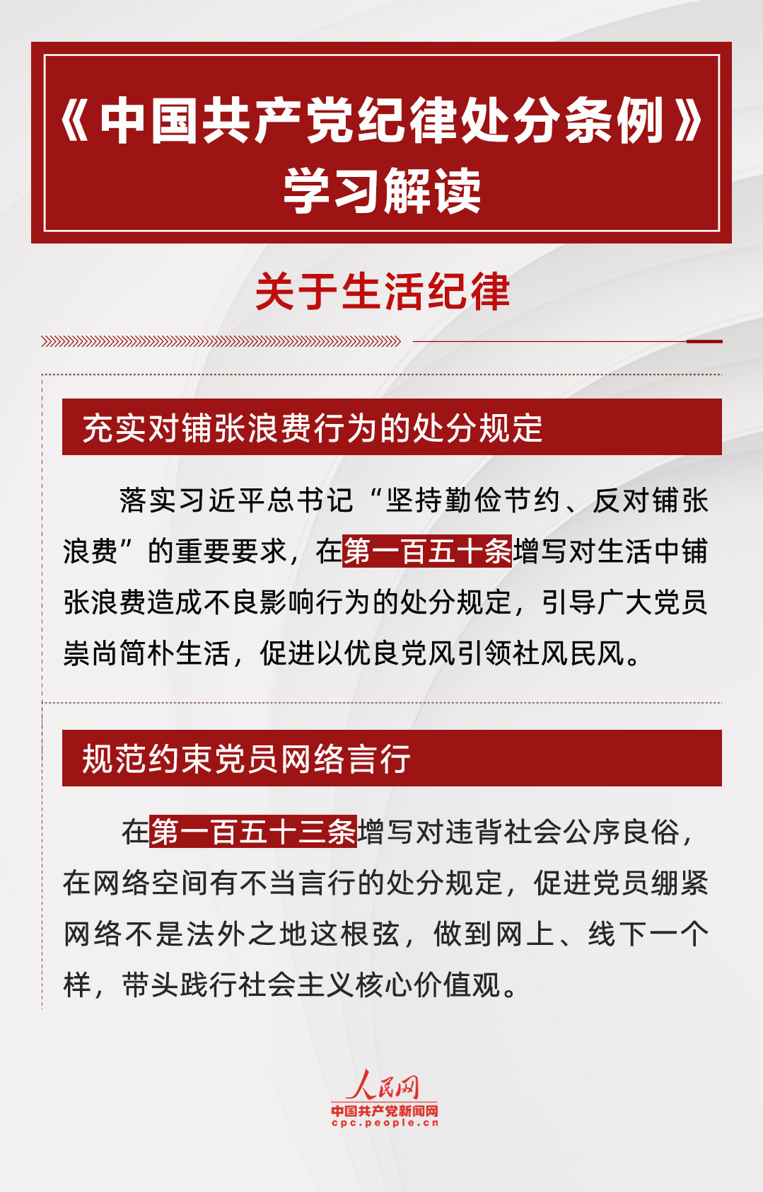 《中國共產(chǎn)黨紀(jì)律處分條例》關(guān)于“對違反生活紀(jì)律行為的處分”章節(jié)共5條,修改2條。