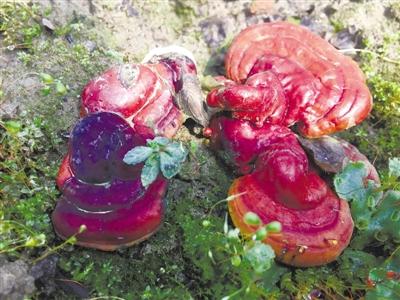 在這個培育房里,一排排貨架上整齊擺放著靈芝菌菌袋,如果仔細看,有的菌袋扎口處已經(jīng)冒出白色的菌絲。再經(jīng)過一段時間的發(fā)菌,就可以種植到地上使之繼續(xù)生長了。而在稍遠一點的一個大棚里,已經(jīng)種植到地里的菌袋正在陽光和水汽的照拂下繼續(xù)生長。程攀說:“因為這里晝夜溫差大,所以溫室大棚棚頂都要蒙上黑色遮光布,白天遮擋陽光,保持適當?shù)臏囟群蜐穸龋@樣才有利于靈芝菌的生長。”