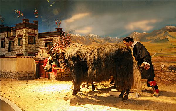西藏牦牛博物館是北京市對口支援拉薩市的一項(xiàng)重要文化創(chuàng)意工程,位于拉薩河南岸柳梧新區(qū),建筑面積8088平方米,加上室外展區(qū),總面積達(dá)10000多平方米,各種藏品數(shù)千件。作為世界上第一個以牦牛為主題的博物館,西藏牦牛博物館不僅具有收藏、保存、展示、科研、教育、服務(wù)等基本功能,也是保存牦牛文化物證、傳播牦牛文化知識、探究牦牛與人類發(fā)展相互依存關(guān)系的公益性公共文化機(jī)構(gòu)。圖為牦牛博物館展示的物品。圖片來源:中國西藏網(wǎng)