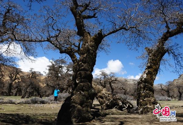 圖為錯(cuò)那縣曲卓木鄉(xiāng)千年沙棘林,總面積有3000畝,千年沙棘林景區(qū)有800畝,生長千年的沙棘樹形狀各異,奇形怪狀,如同盆景中的盆栽,整個(gè)景區(qū)就是一個(gè)碩大的盆景。整個(gè)沙棘林堪稱亞洲乃至世界之最。來源:中國網(wǎng)。