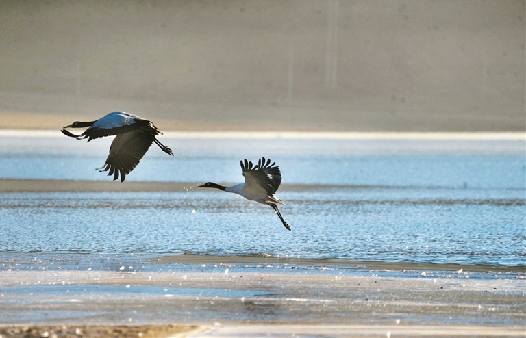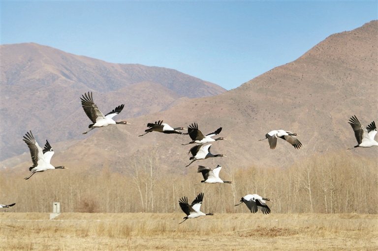 為達(dá)孜區(qū)內(nèi)的黑頸鶴。貢嘎來松 攝