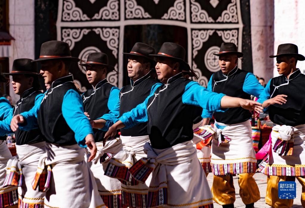 1月26日,活動(dòng)現(xiàn)場的群眾載歌載舞,迎接春節(jié)、藏歷新年。新華社記者 普布扎西 攝