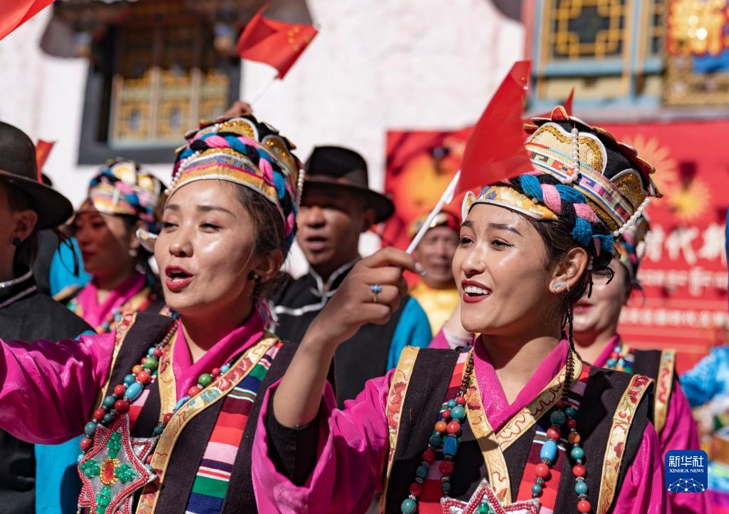 當(dāng)日,西藏拉薩市城關(guān)區(qū)在八廓街老大院夏扎內(nèi)開展迎春節(jié)藏歷新年主題活動(dòng),來自大院附近的多民族居民一起載歌載舞,迎接春節(jié)、藏歷新年。