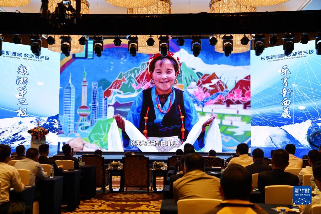 在2022年西藏日喀則旅游推介會(huì)暨數(shù)字旅游創(chuàng)新發(fā)展論壇上,國(guó)內(nèi)業(yè)界人士就數(shù)字文旅和日喀則旅游數(shù)字化發(fā)展前景進(jìn)行主題演講和對(duì)話(huà)(7月15日攝)。新華社記者 張汝鋒 攝