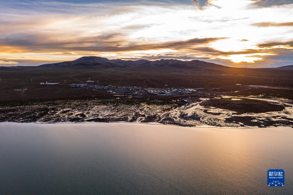 日落時(shí)分的雙湖縣多瑪鄉(xiāng)(7月14日攝,無人機(jī)照片)。新華社記者 孫非 攝