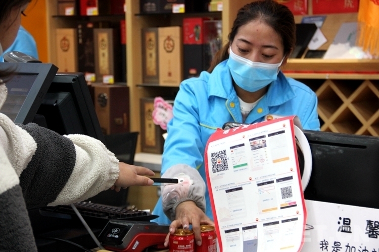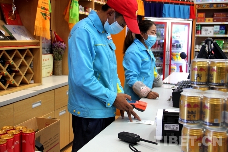 圖為魯朗加油站工作人員在便利店內(nèi)收費 攝影:德吉卓嘎