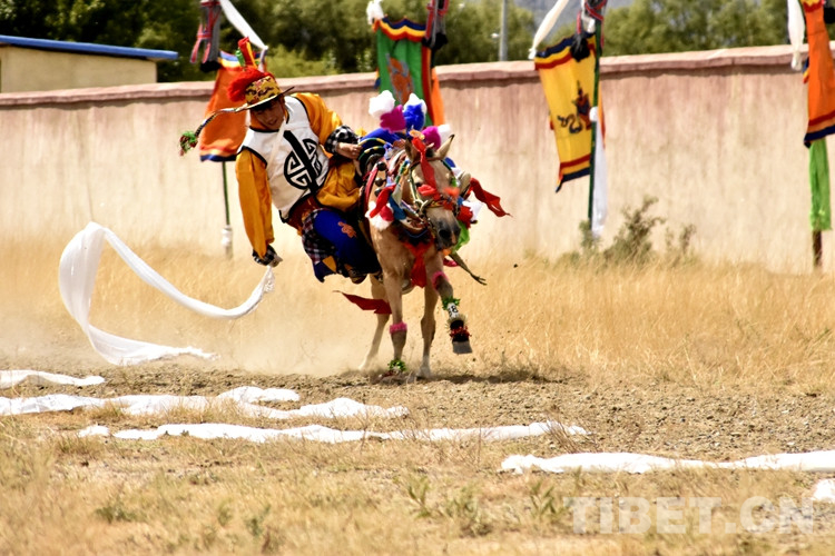 圖為一名騎手在表演馬上拾哈達 攝影:拉姆