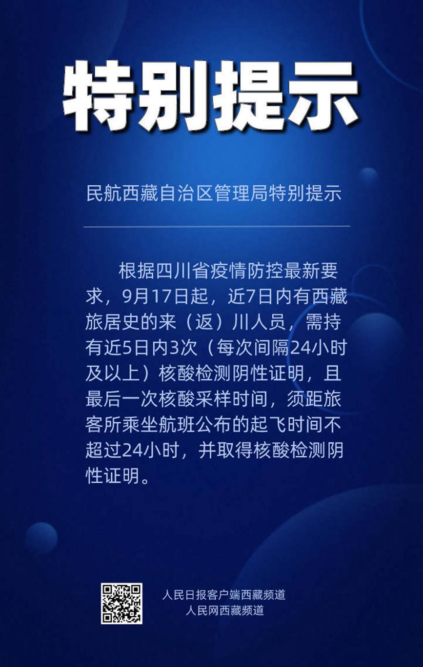 西藏各機(jī)場9月16日航班情況提示 9月17日入川最新要求調(diào)整