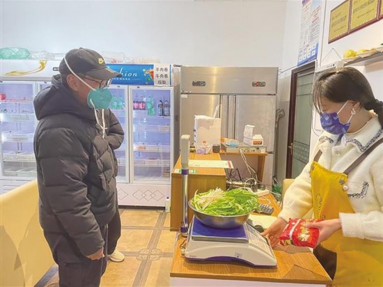 12月7日19時左右,記者在太陽島二路實地走訪發(fā)現(xiàn),街道兩旁的餐飲店陸續(xù)有消費者進店堂食,每家餐飲店門口放置有酒精、免洗手消毒液、體溫監(jiān)測儀?!拔以谂笥讶吹交謴吞檬车南r特別激動,而且看了一下,能堂食的餐飲店選擇種類多,價格也跟平日里一樣?!痹谝患颐媸车晖鈷呙鑸鏊a、測量完體溫后,范先生走進店內(nèi)隔位就座,看著琳瑯滿目的美食精心挑選。在一家冒菜店,除了堂食的顧客外,外賣小哥也在門口等候取餐,也有消費者選擇打包帶回家。